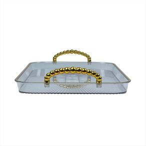 Transforme seus momentos em verdadeiras experiências de luxo com esta bandeja sofisticada com alças douradas. Elegante e versátil, ela é perfeita para servir bebidas em ocasiões especiais, compor uma mesa refinada ou até decorar sua casa com charme e requinte. O design moderno aliado ao acabamento delicado valoriza qualquer ambiente, seja em recepções formais ou encontros descontraídos. Mais do que um item funcional, é uma peça de decoração que transmite bom gosto e estilo. Surpreenda seus convidados com a combinação ideal entre praticidade e sofisticação. Esta bandeja é o detalhe que faz toda a diferença na sua mesa posta Especificações Técnicas Material: PET 345g e PP 20g Medidas: 37,5cm x 26cm Alças: Douradas Metálicas com acabamento delicado Design: Transparente com detalhes texturizados Imagens ilustrativas. Marca: Não Informado Ean: 7901010103459