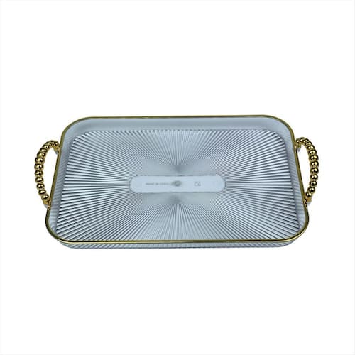 Transforme seus momentos em verdadeiras experiências de luxo com esta bandeja sofisticada com alças douradas. Elegante e versátil, ela é perfeita para servir bebidas em ocasiões especiais, compor uma mesa refinada ou até decorar sua casa com charme e requinte. O design moderno aliado ao acabamento delicado valoriza qualquer ambiente, seja em recepções formais ou encontros descontraídos. Mais do que um item funcional, é uma peça de decoração que transmite bom gosto e estilo. Surpreenda seus convidados com a combinação ideal entre praticidade e sofisticação. Esta bandeja é o detalhe que faz toda a diferença na sua mesa posta Especificações Técnicas Material: PET 345g e PP 20g Medidas: 37,5cm x 26cm Alças: Douradas Metálicas com acabamento delicado Design: Transparente com detalhes texturizados Imagens ilustrativas. Marca: Não Informado