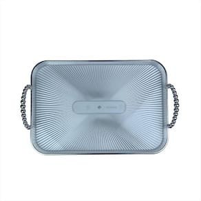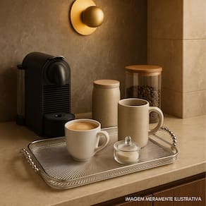 Transforme seus momentos em verdadeiras experiências de luxo com esta bandeja sofisticada com alças douradas. Elegante e versátil, ela é perfeita para servir bebidas em ocasiões especiais, compor uma mesa refinada ou até decorar sua casa com charme e requinte. O design moderno aliado ao acabamento delicado valoriza qualquer ambiente, seja em recepções formais ou encontros descontraídos. Mais do que um item funcional, é uma peça de decoração que transmite bom gosto e estilo. Surpreenda seus convidados com a combinação ideal entre praticidade e sofisticação. Esta bandeja é o detalhe que faz toda a diferença na sua mesa posta Especificações Técnicas Material: PET 345g e PP 20g Medidas: 37,5cm x 26cm Alças: Douradas Metálicas com acabamento delicado Design: Transparente com detalhes texturizados Imagens ilustrativas. Marca: Não Informado