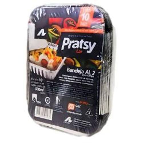 Bandeja Alumínio 500ml com Tampa - 10 Unidades Pratsy