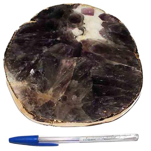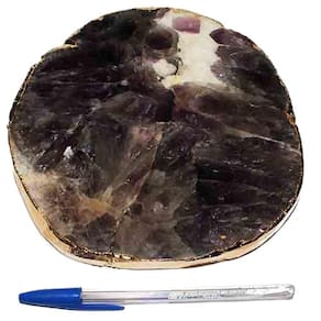 Bandeja de Ametista Baiana natural com 17 centimetros com borda dourada ideal para petisqueira e uma otima decoração Parte superior polida