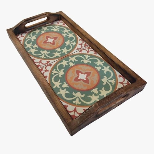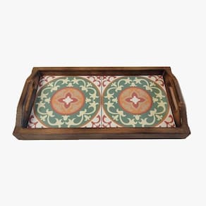 Bandeja Café Da Manhã Grande Com 2 Azulejos Azulejo G2