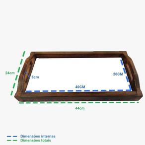 Bandeja produzida em madeira maciça rústica com acabamento de queima japonês shou sugi ban que protege a madeira da ação do tempo e de insetos, proporcionando brilho e realçando a beleza natural da madeira.