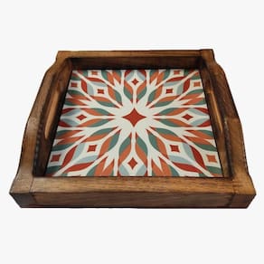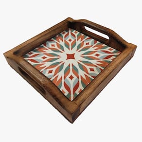 Com dimensões internas de 20x20cm e 6cm de altura, a bandeja oferece espaço suficiente para acomodar seus itens favoritos com praticidade. O acabamento em shou sugi ban na madeira confere um toque rústico e sofisticado à peça, enquanto o azulejo decorativo artesanal traz um toque de cor e personalidade, permitindo que você personalize a bandeja de acordo com seu estilo.