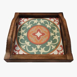 Com dimensões internas de 20x20cm e 6cm de altura, a bandeja oferece espaço suficiente para acomodar seus itens favoritos com praticidade. O acabamento em shou sugi ban na madeira confere um toque rústico e sofisticado à peça, enquanto o azulejo decorativo artesanal traz um toque de cor e personalidade, permitindo que você personalize a bandeja de acordo com seu estilo.