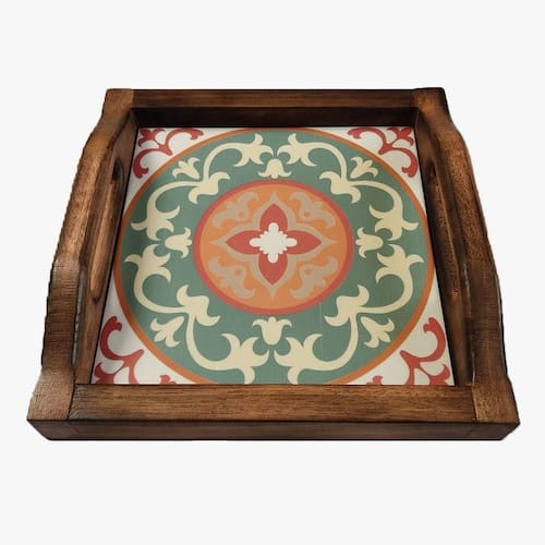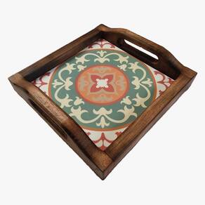 Bandeja Café Da Manhã Madeira Maciça Com Azulejo Azulejo G2