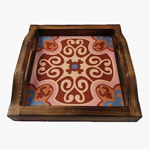 Com dimensões internas de 20x20cm e 6cm de altura, a bandeja oferece espaço suficiente para acomodar seus itens favoritos com praticidade. O acabamento em shou sugi ban na madeira confere um toque rústico e sofisticado à peça, enquanto o azulejo decorativo artesanal traz um toque de cor e personalidade, permitindo que você personalize a bandeja de acordo com seu estilo.