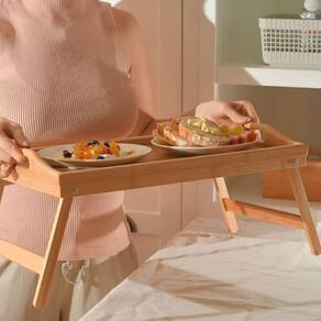 Bandeja Cama Com Pé Retangular Em Bambu Sense 50x30cm Ou -