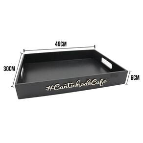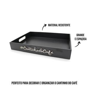 Bandeja cantinho café decoração grande preta madeira mdf Cor: branco Bandeja versátil e multiuso: Feita em mdf de 6mm com pintura em tinta acrílica na cor preta ela é ideal para organizar o seu lar, servir um cafezinho para os amigos, organizar papeis de escritório entre diversas outras utilidades.