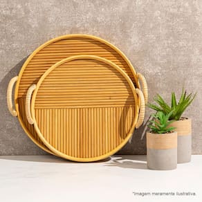 A Bandeja Copa e Cia Rattan Circular com Alça é uma peça encantadora que combina o charme do rattan com a durabilidade do MDF.