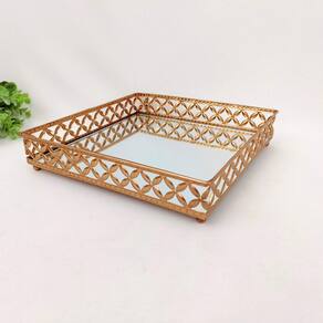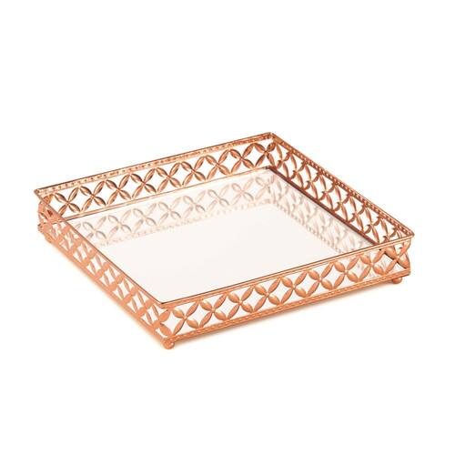 Bandeja Cobre Floral 5X25X25Cm Com Espelho Quadrada G