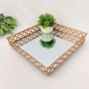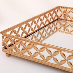 Bandeja Cobre Floral 5X25X25Cm Com Espelho Quadrada G