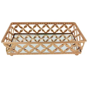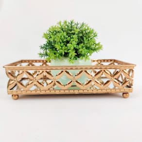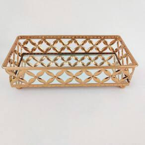 Bandeja Cobre Rose Floral 5x12x24cm Com Espelho Retangular G Vem decorar, seja INIGUAL