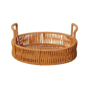 BANDEJA REDONDA COM ALÇA AUTUM de polipropileno de fácil limpeza e higienização. Peça multiuso para organizar e decorar Na cozinha, banheiro use bandejas na decoração Fácil higienização.