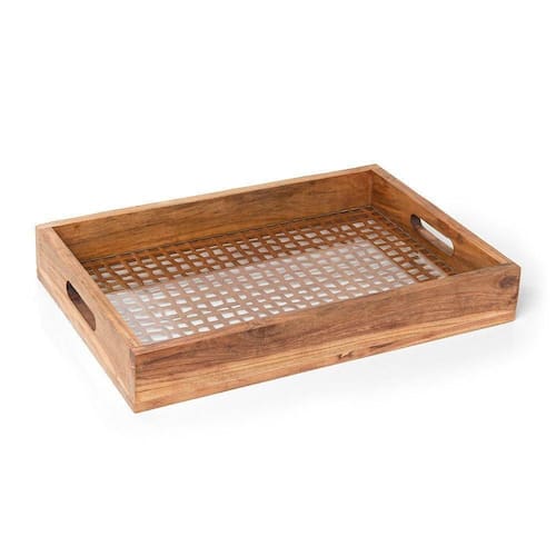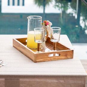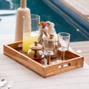 Bandeja Copa E Cia Trancoso Retangular Bandeja Copa e Cia Trancoso Retangular - Características Gerais do Produto: - Composição: Madeira; Vidro; Cana - Detalhes: Fabricado na Índia.; Peça Vendida de Forma Individual.; Design Exclusivo Copa&Cia.; As cores podem sofrer pequenas alterações de cor, variando de monitor para monitor.; Os objetos que ambientam as fotos não acompanham o produto.; As fotos produzidas são apenas como sugestão de uso com as demais peças da coleção.; Peças 100% artesanais. Podem ocorrer variações entre cada unidade. - Cuidados: Armazenar em local seco e arejado.; Limpar o Produto Apenas com Pano Levemente Umedecido; Evitar contato com objetos cortantes ou superaquecidos.; Não molhar; Não utilizar solventes, abrasivos ou alvejantes.; Evite choques-térmicos e impactos. - Dimensões (cm): Largura: 30 cm; Comprimento: 43 cm; Altura: 6 cm Acompanha o produto: - 1 Peça de Bandeja Garantia: - 7 dias/30 dias contra defeito de fabricação