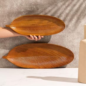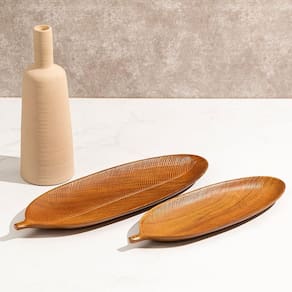 Bandeja Copa E Cia Wood Folha Média Bandeja Copa e Cia Wood Folha Média - Características Gerais do Produto: - Composição: MDF - Detalhes: Peça Vendida de Forma Individual.; Design Exclusivo Copa&Cia.; Por ser um Produto Natural, a Tonalidade da Madeira Pode Variar para cada Peça.; As cores podem sofrer pequenas alterações de cor, variando de monitor para monitor.; Os objetos que ambientam as fotos não acompanham o produto.; As fotos produzidas são apenas como sugestão de uso com as demais peças da coleção. - Cuidados: Armazenar em local seco e arejado.; Limpar o Produto Apenas com Pano Levemente Umedecido; Evitar contato com objetos cortantes ou superaquecidos.; Não molhar; Não utilizar solventes, abrasivos ou alvejantes. - Dimensões (cm): Linha possui variação em 2 tamanhos; Média: 40,5 x 14 cm/ Grande: 50 x 18 cm Acompanha o produto: - 1 Peça de Bandeja Garantia: - 7 dias/30 dias contra defeito de fabricação