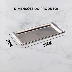Tamanho Ideal: Com 37cm de comprimento, oferece espaço amplo para dispor seus itens de forma organizada e elegante, perfeita para reuniões familiares ou eventos. bandeja de Aço Inox Coffee Retangular Elegância
