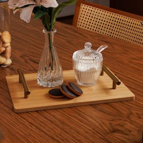 Sirva com charme e praticidade. A Bandeja Seattle combina o toque acolhedor do bambu natural com o requinte do metal dourado, resultando em uma peça versátil para cafés individuais, petiscos ou até mesmo para compor a decoração com elegância.