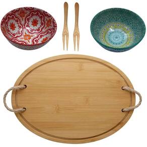 Bandeja de bambu com alça em corda 2 Bowl e Garfos