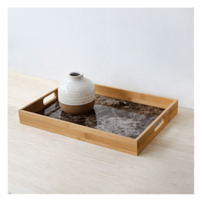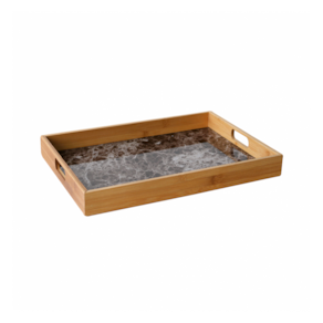 BANDEJA DE BAMBU COM FUNDO EM ESTAMPA MARMORIZADA - 96450