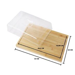 BANDEJA DE BAMBU RETANGULAR COM TAMPA DE ACRÍLICO 32X22X1.7CM - CX110.