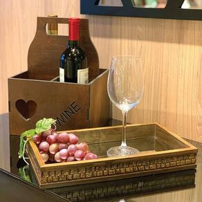 Detalhes Artesanais: Os detalhes cuidadosamente trabalhados conferem à bandeja um toque único, ressaltando a beleza dos materiais naturais. Transforme seus espaços com a Bandeja de Madeira com Espelho Coquinho da Wolff. Sirva com autenticidade, decore com naturalidade e permita que cada detalhe reflita o seu apreço pela natureza.