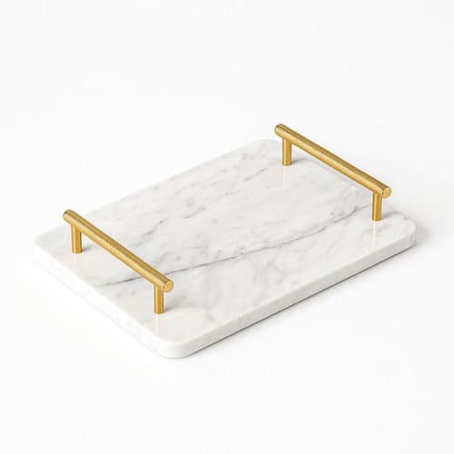 Cada bandeja é cuidadosamente produzida para destacar a autenticidade do mármore e garantir um acabamento impecável.