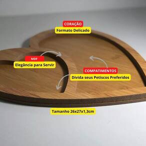 Conteúdo da Embalagem: 1 Petisqueira De MDF Formato Coração Com Duas Divisórias