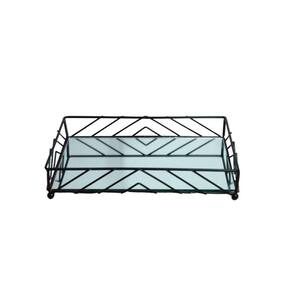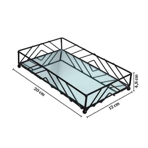 BANDEJA DE METAL ESPELHADA RETANGULAR DE VIDRO 4X12X20CM - KIT203.