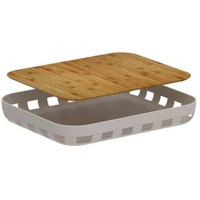 Com design moderno e acabamento sofisticado, combina o bambu natural com estrutura resistente em tom bege, ideal para servir petiscos, café da manhã ou organizar itens com estilo e sofisticação.