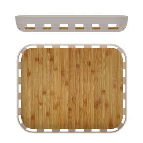 Sua base de bambu garante durabilidade e toque acolhedor, enquanto a borda em polipropileno permite fácil manuseio e segurança no transporte.