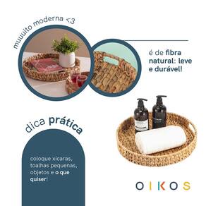 "conheça a bandeja com alças 38cm de fibra natural da Oikos!
