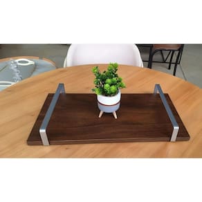 Bandeja Decorativa Castanho com Borda Infinita Alça Prata