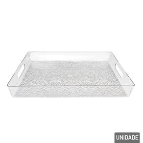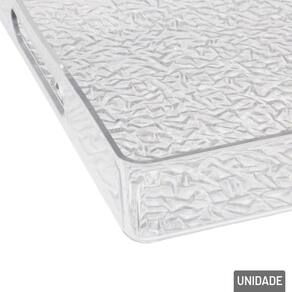 Bandeja Decorativa de Plástico 23x33cm Crist Adicione um toque de sofisticação e praticidade à sua decoração com a elegante Bandeja Decorativa de 23x33cm, em Modelo Cristal com Base em Relevos. Com um design refinado que remete à delicadeza do cristal, essa peça é perfeita para compor ambientes com charme e funcionalidade.\nFabricada em plástico de alta qualidade, ela alia leveza e resistência, sendo ideal para uso decorativo ou utilitário. A base em relevos proporciona um visual diferenciado, com textura elegante que enriquece a composição da peça e evita o deslizamento de objetos.\n-Especificações:\nMarca : FWB\nTipo de material : Plástico\nCores ou Estampa : Transparente\nDimensões do Produto : 4,5 X 23 X 33 CM\nDimensões da Embalagem : 4,5 X 23 X 33 CM\nPeso Bruto (Gramas) : 0.392 Marca: Não Informado