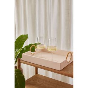 Bandeja Decorativa em MDF com Revestimento em PU Bege e Alças em Bambu