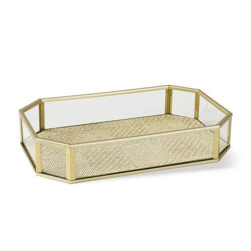 Bandeja Decorativa em Vidro e Metal Dourado