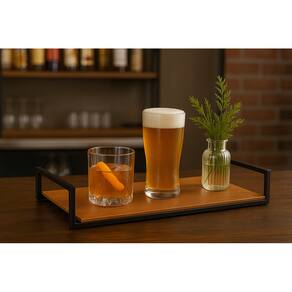 Elegante e funcional, esta bandeja decorativa combina a resistência do aço com a elegância da madeira, tornando-se uma peça versátil para compor diversos ambientes. Com estrutura metálica resistente e acabamento refinado, ela oferece durabilidade sem abrir mão do estilo. A base em madeira valoriza os objetos dispostos sobre ela, criando um visual leve e contemporâneo.