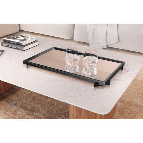 A bandeja Decorativa da Larflex é uma peça diferenciada, possui espelho em sua forma central, que proporciona mais elegância à bandeja. Ela é versátil, pode ser posta para decorar e apoiar objetos sob móveis na sua sala de estar, sala de jantar, quarto etc. Além de agregar na decoração do ambiente, pode ser utilizada para recepcionar seus convidados em seus encontros sociais. Outra dica de uso, já que a bandeja possui uma estética mais formal, é em escritórios, também para servir ou apoiar materiais de trabalho.