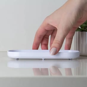 A bandeja decorativa para banheiro Dual traz um toque de delicadeza e praticidade ao ambiente, trazendo a sensação de equilíbrio. Além de possuir apoios feitos para evitar que os produtos entrem em contato com a água, caso a bancada esteja molhada. Assim, os itens ficam protegidos e sempre prontos para uso. A bandeja é fabricada em material resistente, com design imponente, ergonômico e linhas suaves que vão trazer mais vida para o seu banheiro. A bandeja pode ser utilizada também com outros produtos da linha Dual, como o porta sabonete líquido, que se encaixa perfeitamente a ela.
