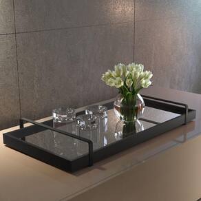 Bandeja Decorativa Preta Espelhada Alça Preta