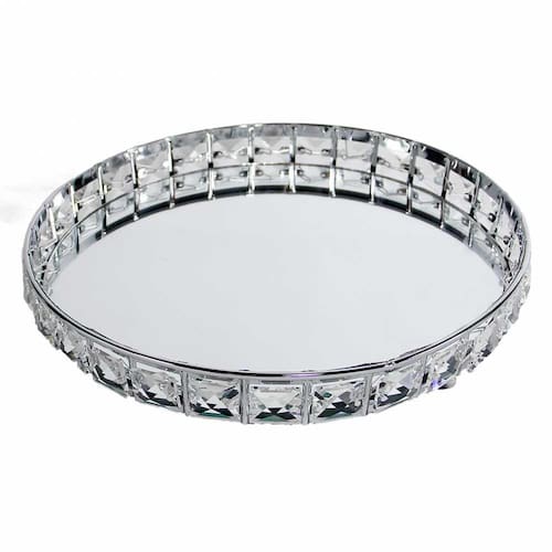 Bandeja Decorativa Redonda Prata Cristal com Espelho