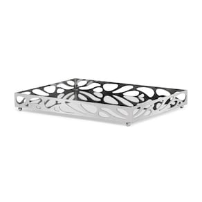 Deixe sua decoração mais elegante e funcional com esta bandeja em metal prata com espelho. Com design moderno e detalhes vazados, é perfeita para organizar perfumes, velas, bijuterias e outros itens, trazendo charme e sofisticação para qualquer ambiente.