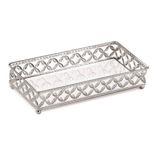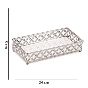 Bandeja Decorativa Retangular em Metal Prata com Espelho 5x24 cm - D'Rossi