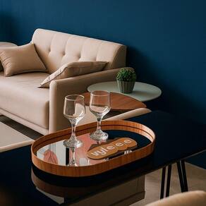 Design sofisticado e funcionalidade impecável se unem nesta bandeja design oval com espelho. Seu acabamento traz um toque acolhedor e sofisticado para qualquer ambiente, proporcionando charme artesanal e autenticidade à peça. Uma escolha perfeita para quem valoriza beleza, funcionalidade.