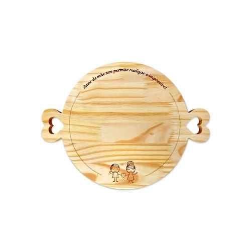 Tábua Redonda com alças de Coração para o Dia das Mães. O presente perfeito para compor uma linda cesta com quitutes e petiscos para a mamãe. A delicadeza e beleza rústica vão fazer sua composição única na sua mesa para o Dia das Mães. Podem ser usadas no café da manhã, almoço, descanso de panelas, e até mesmo como decoração. Gravação a laser com a palavra MÃE. DETALHES: Medida do produto: 25 x 33 cm Material: Madeira de Pinus Acabamento: Lixa Tema: Decoração - Mesa Posta Técnica: Corte Computadorizado Peso aproximado: 200 g Fabricação: Moai Shop CONTEÚDO DA EMBALAGEM: 1 Tábua de Madeira Pinus CUIDADOS: Limpar manualmente com pano úmido. Não molhar totalmente o produto. Armazenar em local seco e arejado. Para maior durabilidade, recomendamos hidratar as peças com óleo mineral. Enviamos óleo mineral para hidratar a tábua. O óleo mineral ajuda a hidratar, dar brilho e aumenta a durabilidade do seu produto. E VAREJO A Moai Shop é fabricante, podemos fornecer em maiores quantidades para . Tags: mesa posta, decoração, cozinha, copa, sala, decoração de interiores, guardanapo, argola, coração, pratos, louça, coração, pinus, madeira, dia das mães, amor, love, almoço especial, almoço dia das mães,