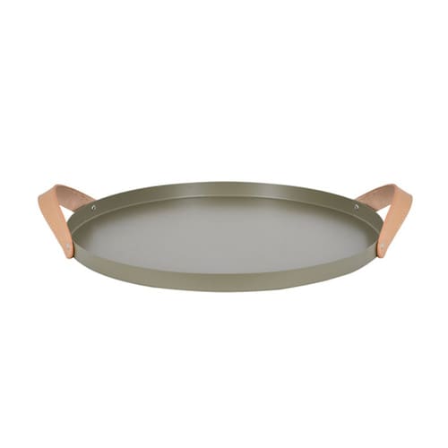 Bandeja Decorativa de Ferro com Alça em PU (Couro Ecológico) Verde Militar