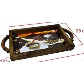 Bandeja em madeira suporte bebidas e café decorativa - coffe