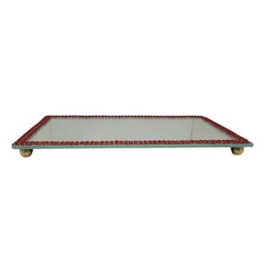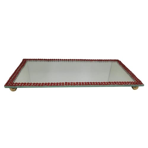 Bandeja Espelhada Decorada Artesanal 24 cm em Vidro Cor: Vermelho Bandeja Espelhada Decorada Artesanal 24 cm em Vidro