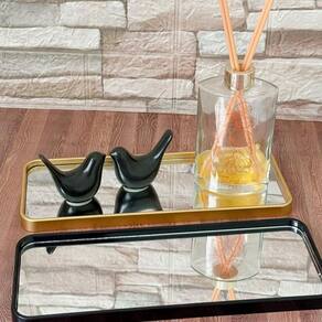Bandeja Espelhada Decorativa Lavabo Banheiro Sala, Expositor de Joias Multiuso 01 Unidade 30x10cm Cor: Preto Bandeja Decorativa Espelhada 30x10cm com Estrutura em Plástico - Sofisticação e Praticidade para sua Decoração A Bandeja Decorativa Espelhada é uma opção elegante e funcional para compor diversos ambientes da sua casa. Com estrutura em plástico resistente e base espelhada, ela une leveza, praticidade e estilo. Perfeita para organizar perfumes, cosméticos, acessórios ou servir com charme em ocasiões especiais. Disponível nas cores preta ou dourada, se adapta facilmente a diferentes estilos de decoração. Destaques do Produto