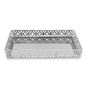 Linda Bandeja espelhada decorativa, toda detalhada e em tamanho perfeito para caber na maioria dos lugares. Pode ser usada no seu lavabo, também fica linda na sala com pequenos enfeites dentro e também na cozinha, com pequenas plantas para dar um charme adicional. Enfim, use sua criatividade ou procure pelos nossos kits prontos com enfeites diversos!